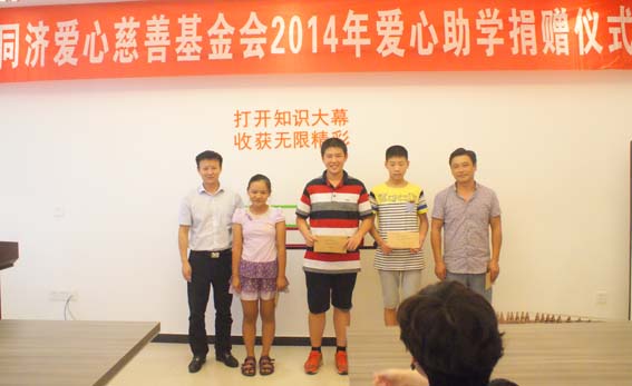 2014年8月23日下午,同济爱心慈善基金会2014年度第二次爱心助学捐赠仪式在公司七楼培训室隆重举行,公司总经理暨同济爱心慈善基金会副理事长、技术中心总监以及行政中心总监出席了此次捐赠仪式。