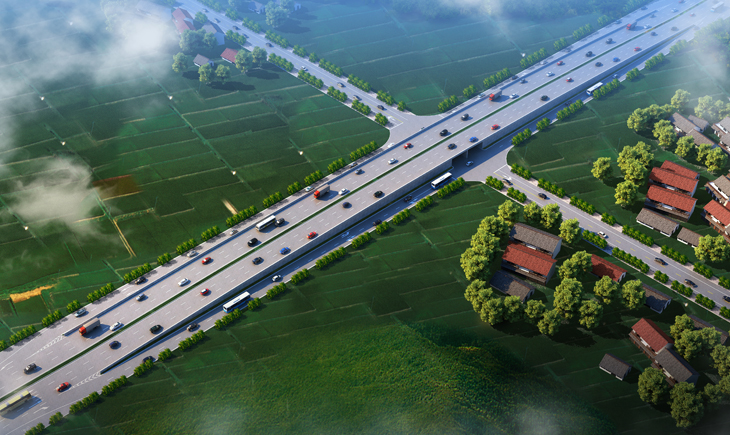 G206乐平桃林至大田段公路改建工程道路设计起点为桃林村接现状206 国道(景德镇与乐平边界),路线基本沿现状206 国道中心线布线,路线由北向南延伸,经塔前片区、西坞、安邦、杨家畈至大田村接现状S205,路线设计全长10280.750m。道路等级为一级公路兼城市主干路,路幅宽度为45m,全线双向6 车道,设计速度为80km/h。