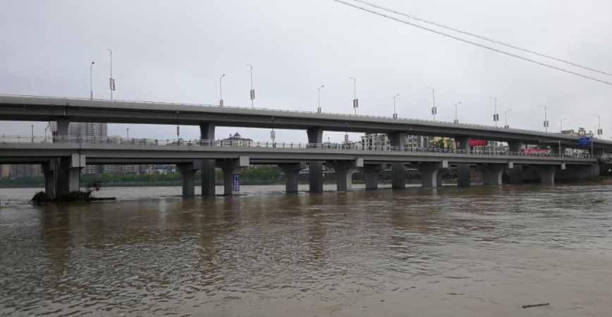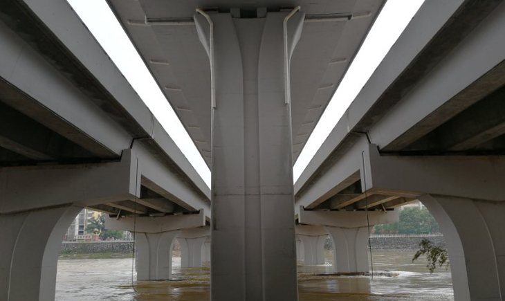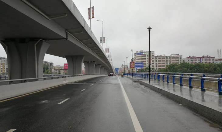 上高大桥位于上高县中心城区,是连接城南、城北的城市桥梁。上层桥跨越锦江两岸河堤,上跨胜利路和沿江路,跨径布置为13*30m,桥宽为16m,下层桥越锦江与两岸河堤的胜利路和沿江路平交,采用跨径布置为22m简支箱梁+5*30m先简支后连续箱梁+22m简支箱梁,桥梁全长195m,单幅桥宽13m。